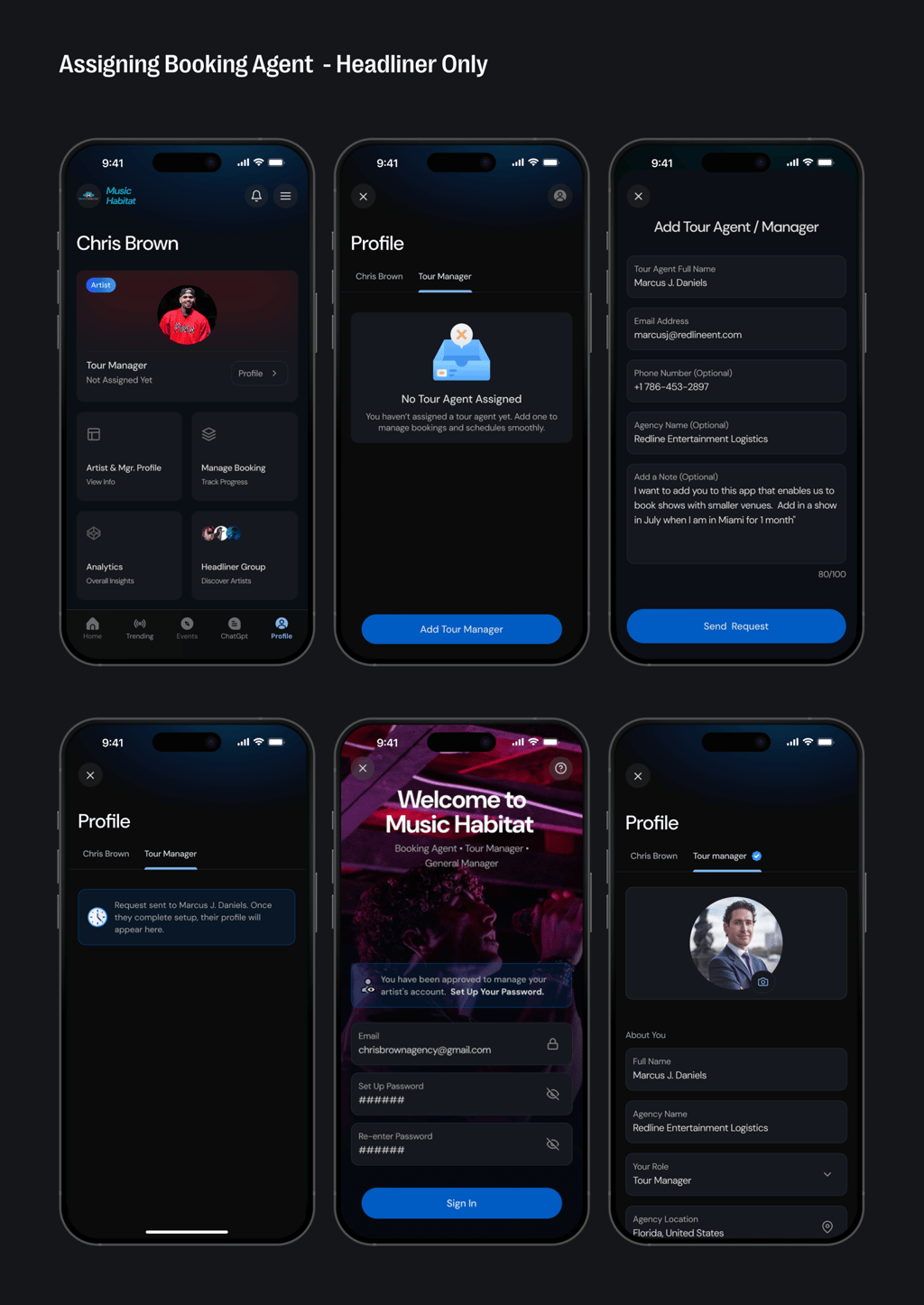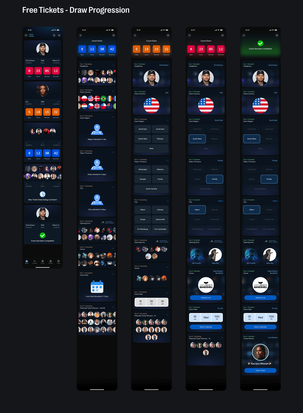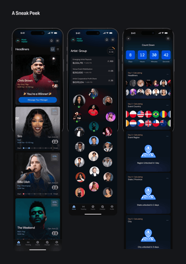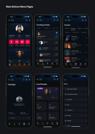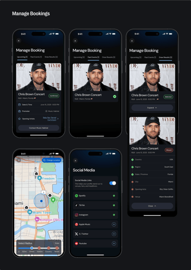 🟢4 user type Fan, Headliner , Venue , Emerging Artists UI experience