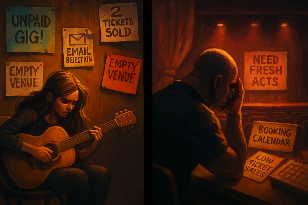 Over 90% of emerging artists struggle to secure live performances due to gatekeepers, lack of exposure, and complex booking processes. Meanwhile, 70% of small to mid-sized venues report difficulty sourcing fresh, high-quality talent that fits their audience.