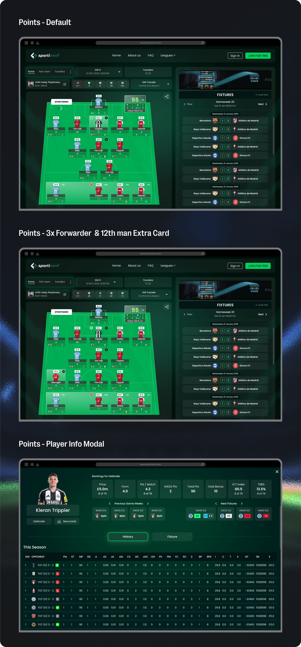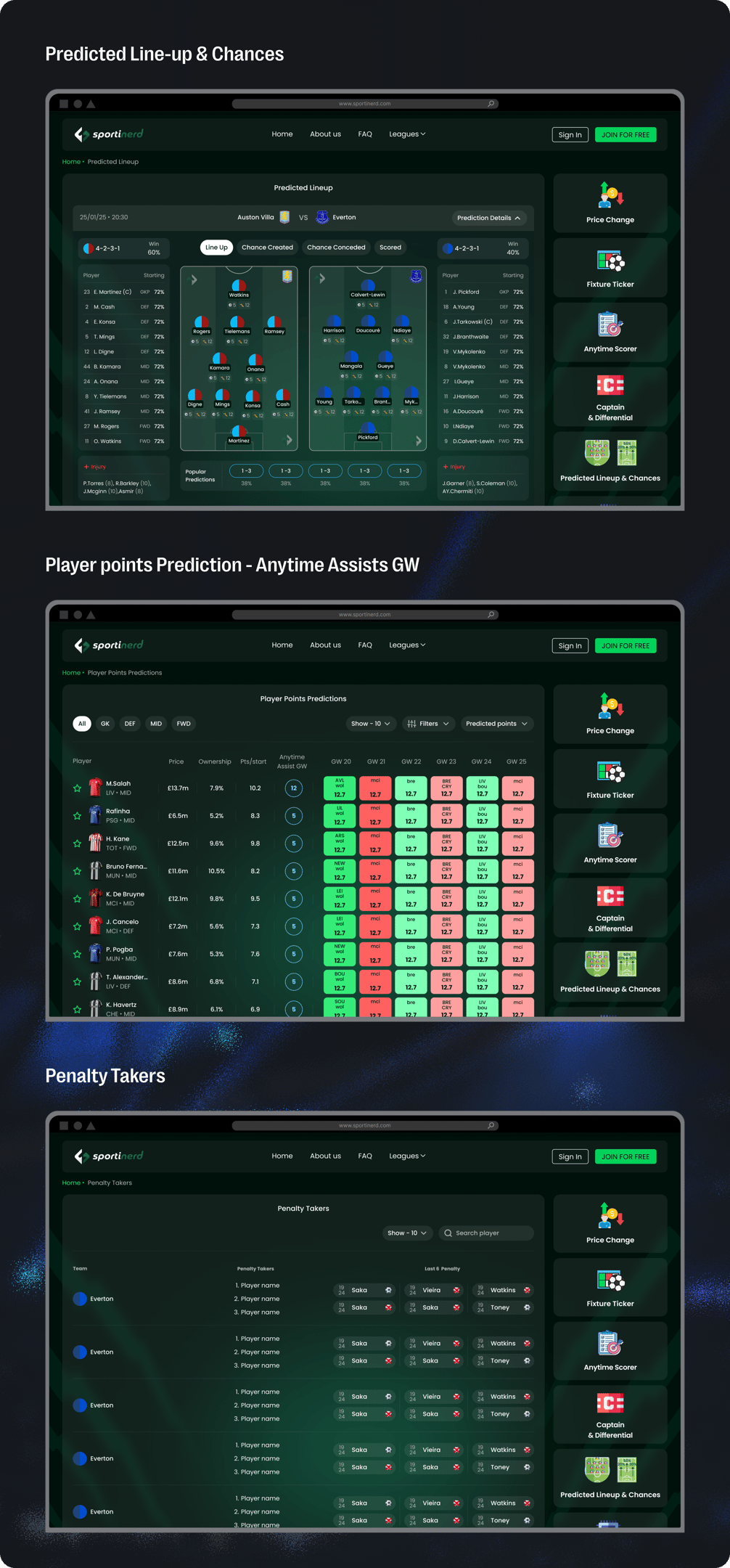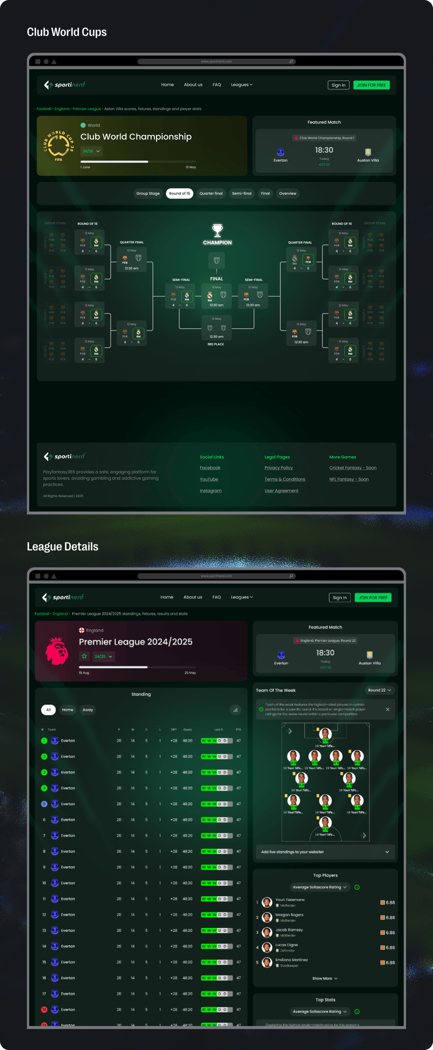 Sportinerd is a fantasy football platform that combines Fantasy Football, Football Analytics, and Live Scores—all in one place. It’s designed with a clean, modern UI to deliver a smooth and engaging experience.